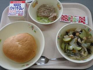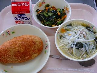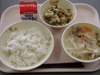 10月20日(火)の給食は、麦ごはん、牛乳、ワンタンスープ、ツナともやしの炒め物でした。ワンタン久しぶりです。