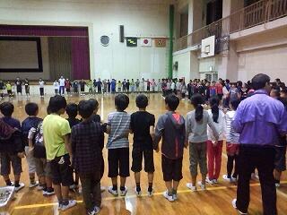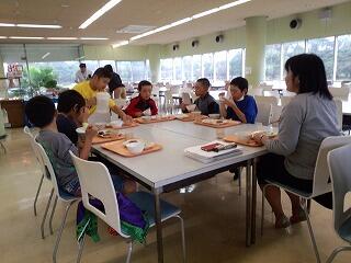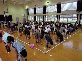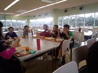 2日目の朝です。朝の集いは体育館で行いました。朝ご飯もしっかり食べていました。