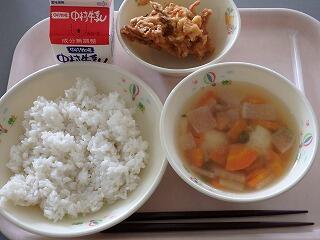 11月19日(木)の給食は、麦ごはん、牛乳、とりの和風あげ、サツマイモの味噌汁でした。