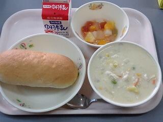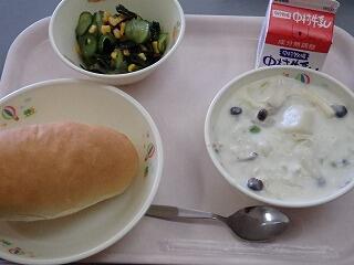 10月28日(水)の給食は、コッペパン、牛乳、クリーム煮、海藻サラダでした。