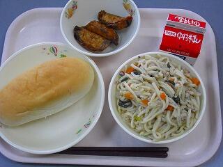10月21日(水)の給食は、コッペパン、牛乳、野菜ラーメン、棒々鶏でした。ラーメンみんな大好きです。