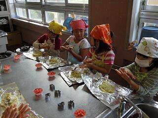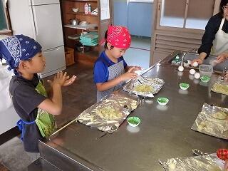 11月11日(水)の1校時 1年生は学校でとれたサツマイモを使って、スイートポテト作りを行いました。エプロン、三角巾姿がとてもかわいかったです。