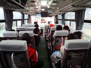 到着予定時刻5時25分ぴったりにバスが西門に入って来ました。元気いっぱい、笑顔の子どもたちがバスから出てきた時、ほっとしました。
