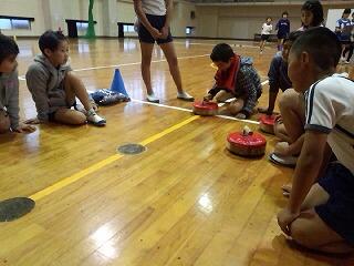 18日(水) 2日目 雨のため屋内追跡ハイキングをしています カーリングなど初めてしたものもあって楽しそう でした。