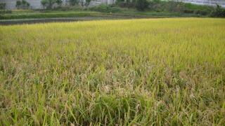 さあ、いよいよ稲刈りです。立派に実った稲を5年生が刈ります。