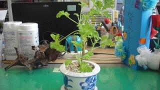 その香りで蚊やハエを寄せ付けない、「蚊れん草」という植物を知っていますか。上新田小の事務室にはそれがあるんです。