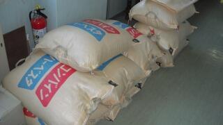 5年生がイートン田んぼで稲刈りをした米が、脱穀されて学校に届きました。おいしい新米を子どもたちが食べる姿を見るのが楽しみです。普通米が7袋、もち米が3袋でした。