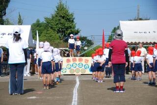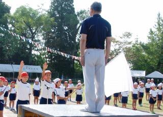 運動会の一場面です。団長による誓いの言葉です。力強く宣誓しました。