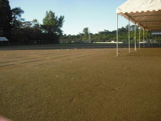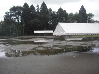 昨日までの雨で運動場に溜まった水がほとんど引きました。今日の運動会練習はやれそうです。