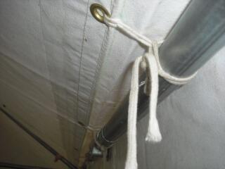 テントに水が溜まらないように、「テントしばり」を教えてもらい、職員でしばりました。
