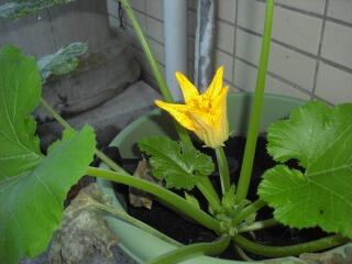 4年生が育てているズッキーニです。今朝、大きな花をひとつ咲かせていました。