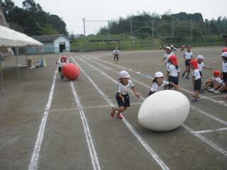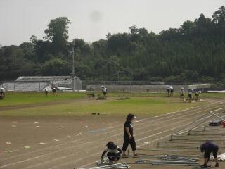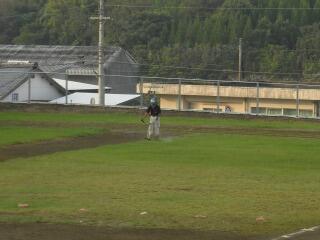 子どもたちが気持ちよく運動会の練習が出来るようにと朝早くから、グランドの草刈りをする黒澤さんです。