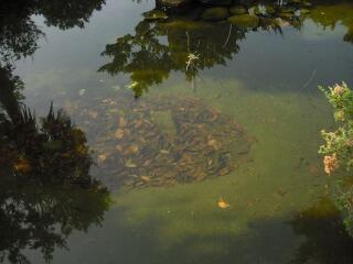 運動場ではにぎやかに運動会練習をしていますが、庭にある 池では、赤とんぼやメダカたちが楽しく秋を楽しんでいました。