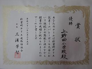 6月25日(土)に、町P連ミニバレーボール大会が行われました。予選リーグは、新田学園と富田中との対戦でした。どちらの試合も3セットの激戦の末、富田小との決勝戦となりました。そして、見事に優勝!50名以上参加の懇親会も盛り上がりました。1年後も、連覇を狙います!