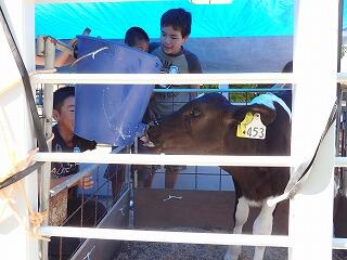 その後、パネルを使った酪農に関する仕事の説明や、模型の乳牛を使った搾乳体験、子牛とのふれあい、大型トラクターの試乗など、たくさんの活動を体験し、酪農という仕事の奥深さや大変さ、そしてよさを知ることができ、一つ一つの仕事の意義にふれることができました。子ども達はこの活動を通して、仕事についての理解、そして自分の夢やなりたい職業について考えるよい機会になったと思います。
