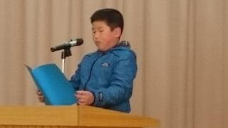 子ども達の作文発表では、2・4・6年生の代表の子どもが、3学期に努力していきたいことをステージの上で発表しました。