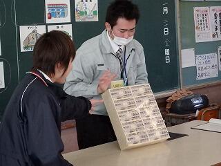 1月20日(金)に、町の税務課から2名の講師をお招きして、6年生対象の租税教室を行いました。まず、「公園」「学校」「コンビニ」「遊園地」等の絵カードを、「税金を使ってつくられたもの」と「税金を使ってつくられていないもの」に分ける活動から始めました。「銀行」等については、子ども達も考えるのが難しかったようです。