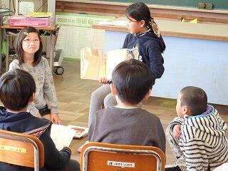 説明会を行っている間、3年生と新入児の交流活動を行いました。「読み聞かせ」「クイズ」「ジャンケン列車」「ダンスと歌」など、この日のために3年生が一生懸命準備をしてきました。11名の新入児も、笑顔いっぱいの活動となりました。