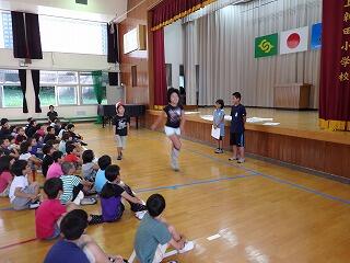 6月14日(火)に、運営委員会の子ども達による委員会集会が行われました。今回は、児童会のスローガンの発表です。今年度の児童会のスローガンは、「たくましく 笑顔で がんばる 上新田っ子」です。「たくましく」「笑顔で」「がんばる」という一つ一つの言葉に込められた意味についてもみんなで考えました。また、よいお手本と悪いお手本を示しながら、正しい廊下歩行をすることについても呼びかけました。