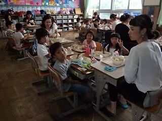 6月21日(火)に、給食試食会が行われました。まずは、富田小学校の渡部栄養教諭より、給食に関する講話をしていただきました。その後、各教室に分かれて試食しました。この日のメニューは、中華どんぶりと三食ナムルでした。おうちの人と給食を食べて、子ども達もニコニコの給食時間でした。