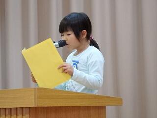 子ども達の作文発表では、1・3・5年生の代表の子どもが、2学期に努力したことや来年頑張っていきたいことなどをステージの上で発表しました。