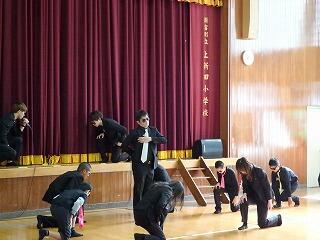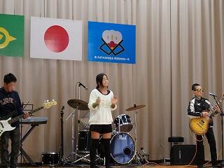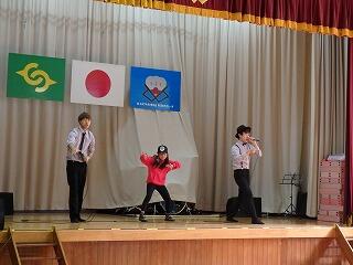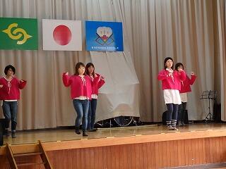 1月15日(日)のPTAバザーの後、PTA主催の「ふれあいステージ」が行われました。子ども達や保護者の方などが歌やダンスなどを披露し、大いに盛り上がりました。また、県のシンボルキャラクター「みやざき犬」も特別出演し、キレのあるダンスを披露してくれました。