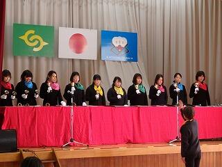 子ども達の作文発表では、2・4・6年生の代表の子どもが、3学期に努力していきたいことをステージの上で発表しました。