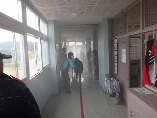 1月19日(木)の3校時に、避難訓練(火災)を行いました。まず、学級での事前指導の後、3階の算数教室で煙体験をしました。火災によって亡くなる人の多くは、煙によるものだそうです。子ども達は、ほとんど前が見えない状態で避難することの難しさを実感することができたと思います。