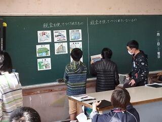 1月20日(金)に、町の税務課から2名の講師をお招きして、6年生対象の租税教室を行いました。まず、「公園」「学校」「コンビニ」「遊園地」等の絵カードを、「税金を使ってつくられたもの」と「税金を使ってつくられていないもの」に分ける活動から始めました。「銀行」等については、子ども達も考えるのが難しかったようです。