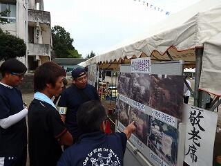 今年度の運動会は、現在の運動場で、小学校単独で行う最後の運動会でした。その記念として、午前の部終了後に保護者や地域の方を含めて全員写真撮影を行いました。また、本部席近くに設置した「在りし日の校舎全景写真」や「なつかしの新聞など」のコーナーでは、たくさんの保護者や地域の方が思い出話に花を咲かせていました。