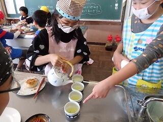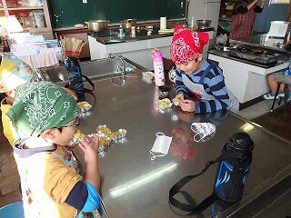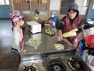 他の学年でも、収穫したサツマイモをスイートポテトや味噌汁の材料にしたりしておいしくいただきました。また、給食の材料としても使われ、味噌汁として全員でいただきました。