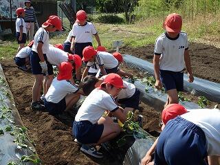 苗植えから、収穫、調理までの活動を通して、子ども達は作物を作ることの大切さや苦労、その素晴らしさ、そして食に対する感謝の心を学ぶことができたと思います。これからも、このような活動を通して、子ども達の心を育てていきたいと思います。