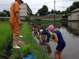 6月6日(月)に、5年生の子ども達がイートン田んぼで田植えを行いました。地域の方の説明を聞き、田んぼの中に入った子ども達は、せっせと苗を植えていきました。秋にはたくさんのお米が収穫できるといいです。お米作りの苦労を知ることは、感謝して食べる心を育てると考えています。