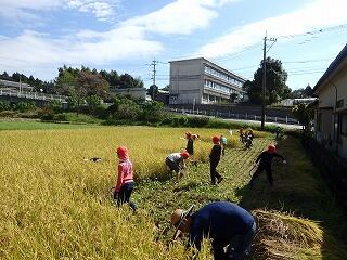 今年は、天候にも恵まれ、肥料もよく効いたのでしょう。昨年度以上の収穫がありました。この後、今月の29日(日)に行われるPTAバザーでお米を販売したり、保護者と一緒に収穫祭を行ったりしていきます。