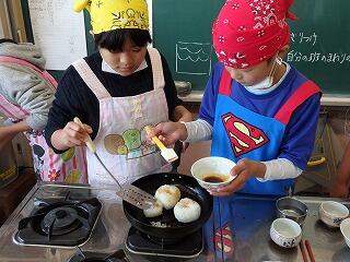 2月16日(木)に、5年生が調理実習を行いました。まずは、イートン田んぼで栽培し、自分達で収穫した米を使って焼きおにぎりを作りました。鍋でお米を炊き、炊きあがったご飯をおにぎりにし、醤油ダレをつけながらフライパンで焼くと、香ばしい香りでいっぱいになりました。また、「家族とほっとタイム」というお茶会の学習も合わせて行いましたので、お茶を入れ、ちょっとしたお菓子も準備しました。