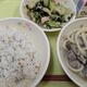 12月4日の給食は、赤かぶ青菜ごはん、牛乳、神楽うどん、みそドレ和えでした。