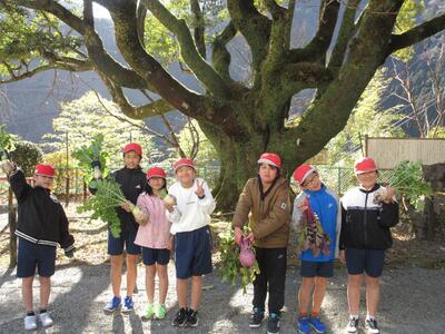 5年生が収穫!西米良の伝統『糸巻き大根』が給食に登場!