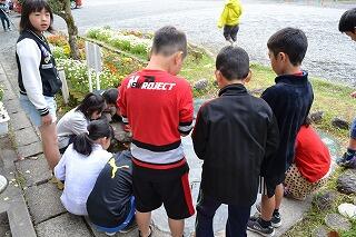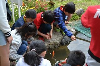 さっそく今日の朝子どもたちが金魚の様子に興味津々。