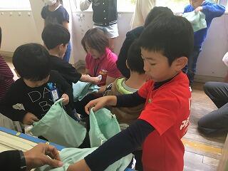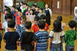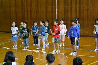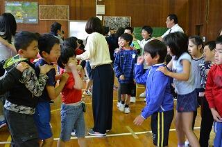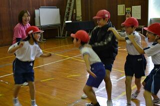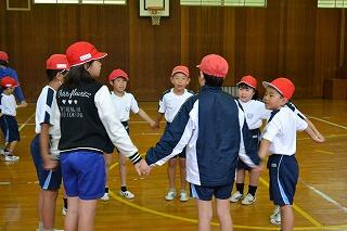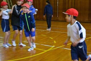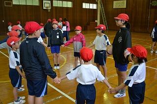 ムカデディフェンスの様子。1年生も楽しんで運動に