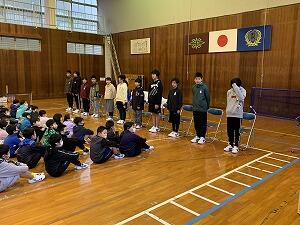 西米良中学校2年の堤康士郎さんが村所小学校に、