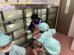 給食調理場の所長にも見ていただき、その後校内放送でお話をしていただきました。