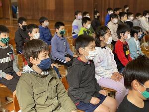 1年生から5年生までの在校生は、姿勢正しく、真剣なまなざしで参加できました。