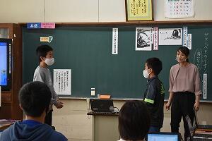 西米良中学校2年の堤康士郎さんが村所小学校に、