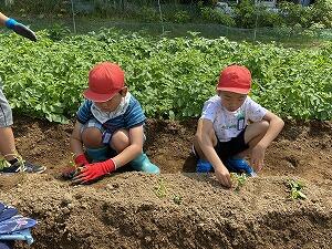 例年は地域の方やおうちの方と一緒に行いますが、本年度は時間を短縮し、子ども達と教員で行いました。