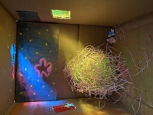 5年生は「のぞいてみると」という学習ですてきな作品を仕上げていました。