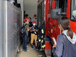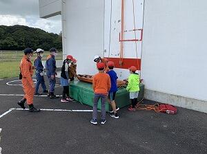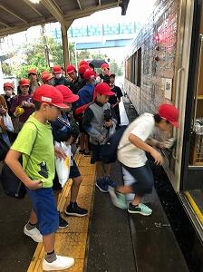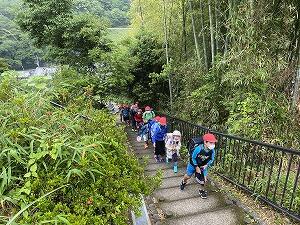 上級生が下級生の荷物を持ったり、声をかけ合ったりしながらがんばって上ります。