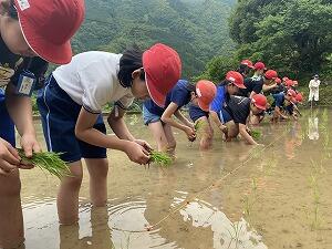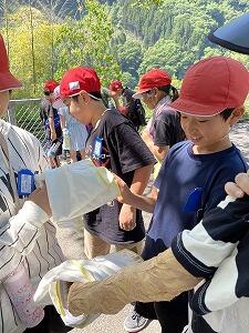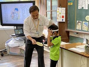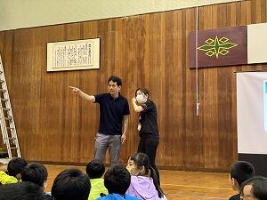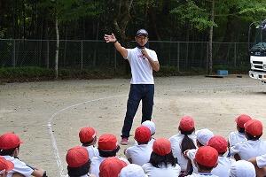西米良中学校2年の堤康士郎さんが村所小学校に、