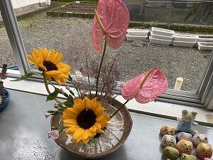「みやざき花いっぱいプロジェクト2020」の取組で美しい花のオブジェをセッティングしてくださいました。