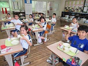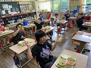 6年生も小学校最後の給食をしっかり味わってお礼を言いました。