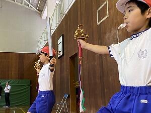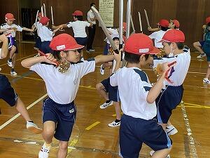 毎朝始業前に上級生が下級生を教え、今年度初めて舞う1年生も少しずつ舞えるようになってきました。